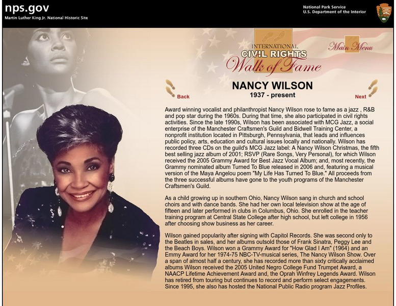 National Park Service: International Civil Rights Walk of Fame: Nancy Wilson