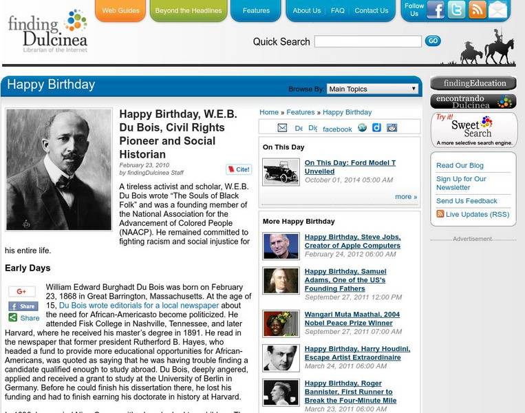 A biographical profile of W.E.B. Du Bois, an American civil rights activist (1868-1963), who worked to promote equal rights for African Americans.