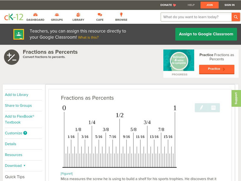 Ck 12: Arithmetic: Fractions as Percents Grade 6