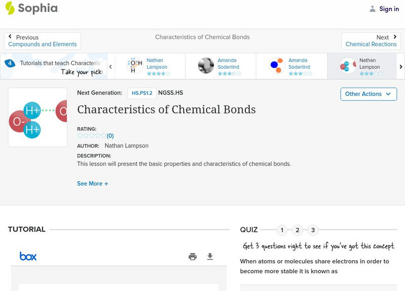 Sophia: Characteristics of Chemical Bonds: Lesson 2
