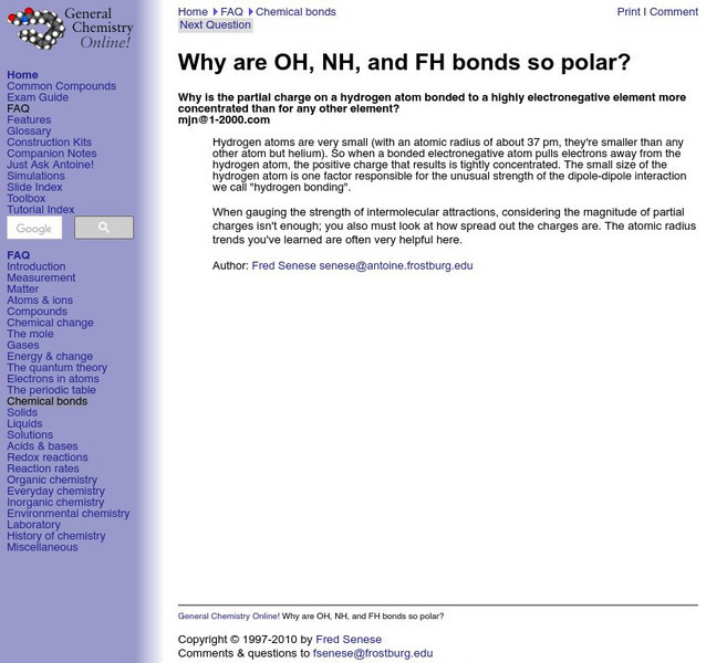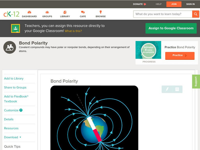 [Free Registration/Login may be required to access all resource tools.] Polarity and covalent bonds.