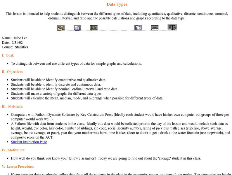 The University of Illinois provides this site that is helpful because of the various kinds of data that can be collected. This lesson plan helps students differentiate between qualitative, quantitative, and many other types of data.