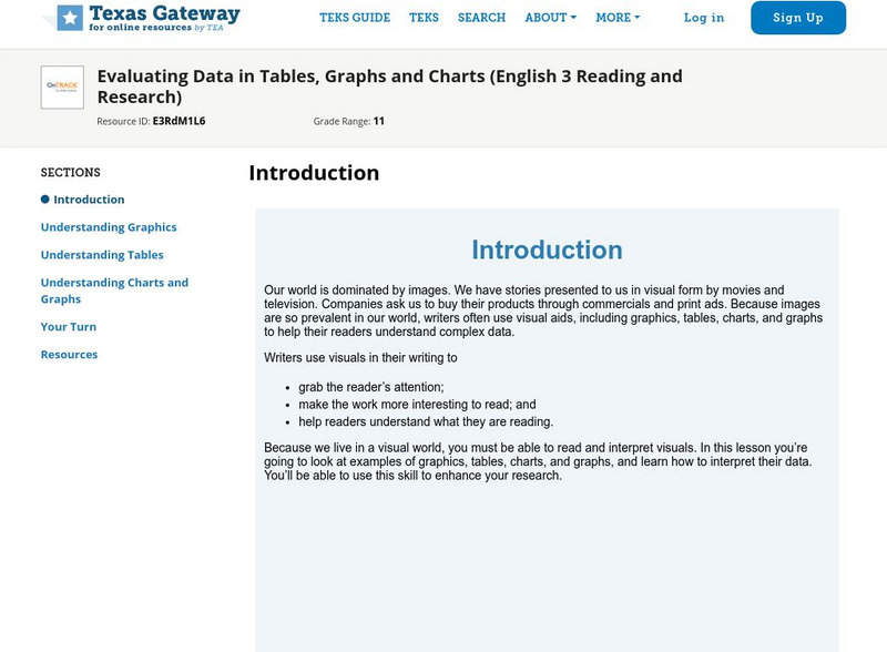 Texas Gateway: Evaluating Data in Tables, Graphs and Charts