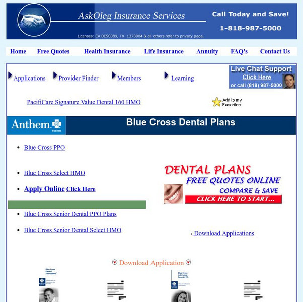 Blue Cross Health Ins. Co. website summarizes their various dental plans: PPO, Saver Select HMO, Select HMO, Premier Select HMO, Senior Dental PPO, Senior Select HMO, and SmileNet Dental.