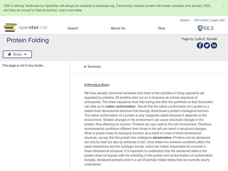 Open Stax: Lydia E. Kavraki: Protein Folding