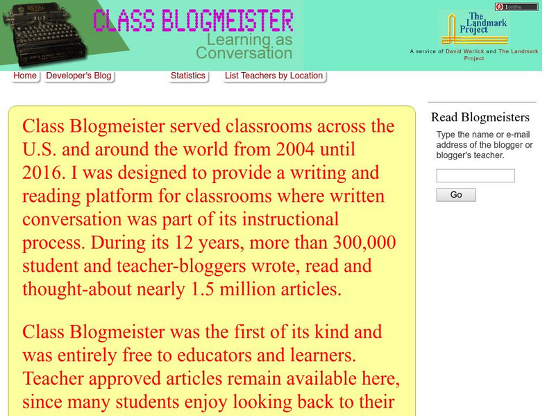 BlogMeister is a blogging tool developed for teachers as an authentic publishing environment to promote the development of effective communication skills in students. Teachers establish a blogging account by directly contacting the...