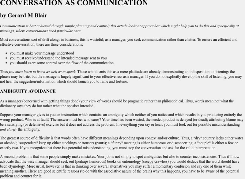 At this site from the University of Edinburgh, the author claims that planning and control produce good communication. CCSS.ELA-Literacy.CCRA.SL.1