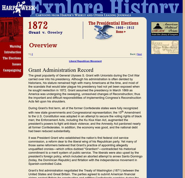 An introduction of the 1876 Presidential election from the nominations, through the campaigns and winding down with both the election results and controversies.