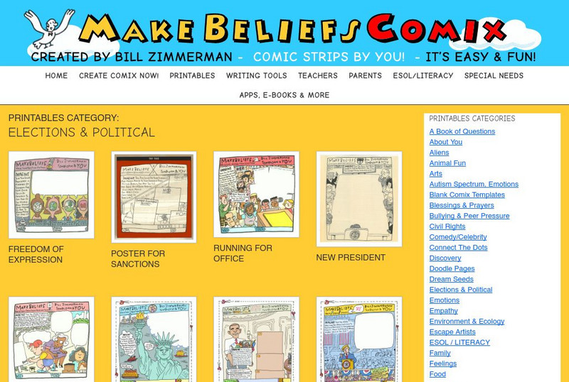 A collection of printable comics where students complete an activity, such as design a campaign bumper sticker, imagine a conversation between Hillary Clinton and Donald Trump, or make a list of ideas that would promote the rights of women.