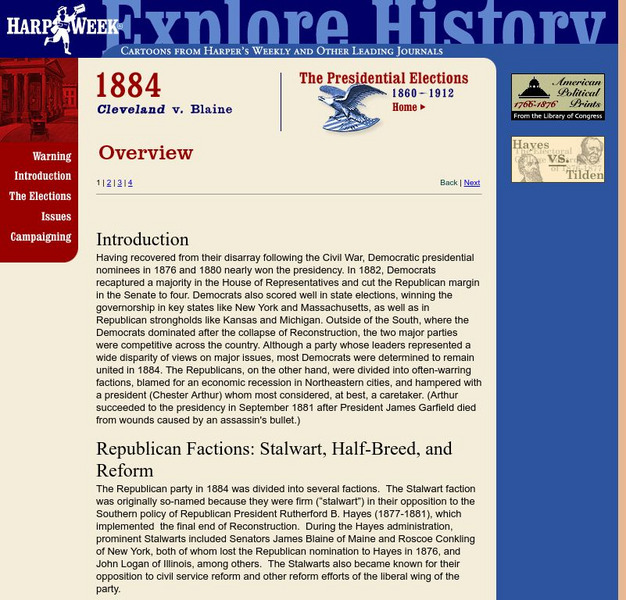 The campaign of 1884 was filled with scandals and recriminations from both parties. Read about the conventions that selected presidential candidates and read about the campaigns and election.