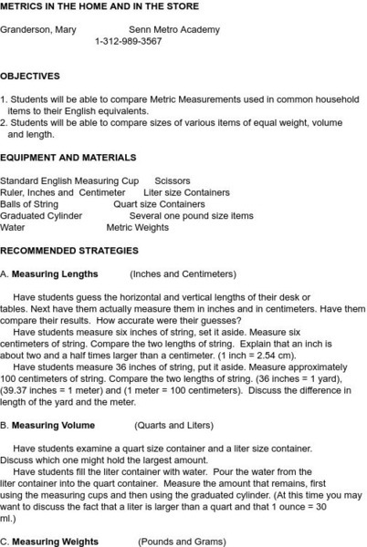 In this lesson plan site, young scholars will compare SI unit (metric) measurements of common household items and their English equivalents.