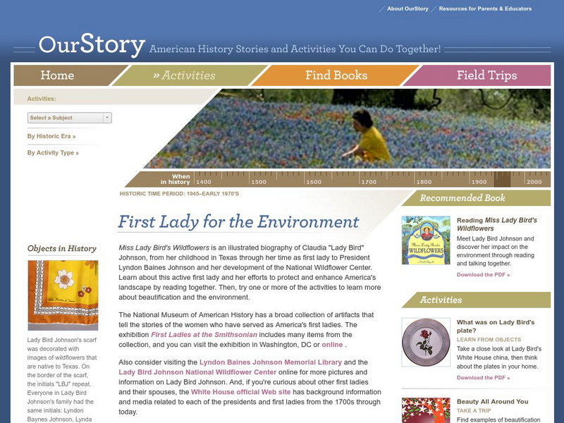 This resource provides information about Lady Bird Johnson, wife of President Lyndon Baines Johnson, and the efforts she put forth to preserve the environment. Activities, videos, and book recommendation are included.