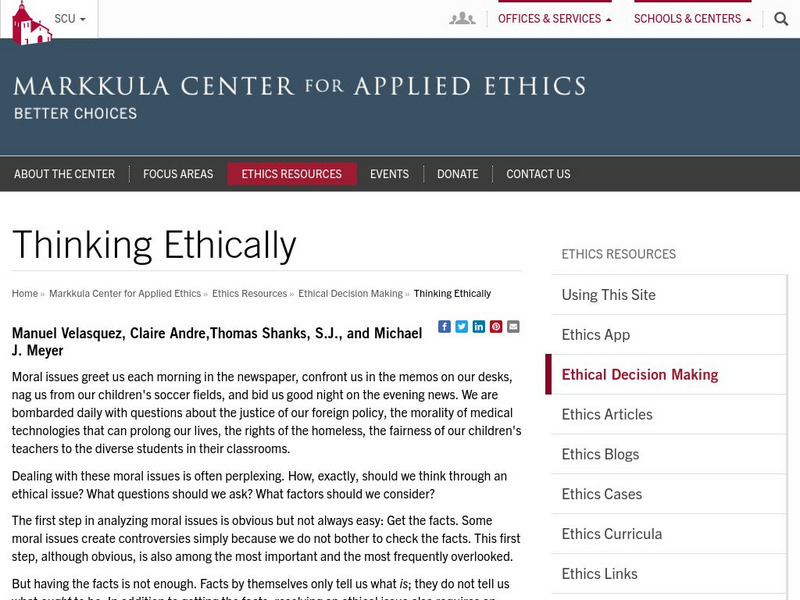 Santa Clara University: Markkula Center for Applied Ethics: Thinking Ethically