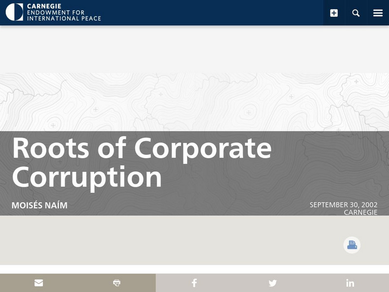 This is an article that dissects the causes of corporate corruption. Looks at the greed and dishonesty often at the center of corporate scandals. Author looks at the issue from more of a standpoint of human nature than from penalties and...