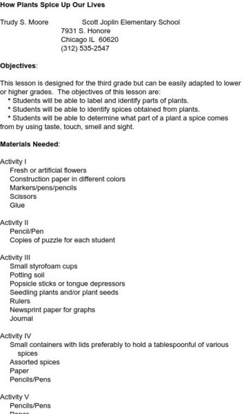 Young scholars take apart and label basic parts of a plant in this lesson plan. The students also use kitchen spices to determine which part of a plant was used for various flavorings.
