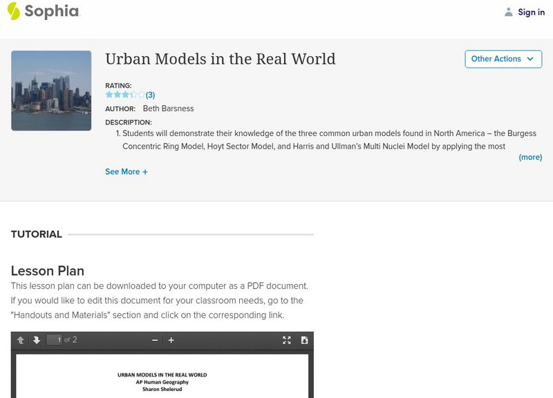 By using Google Earth and city road maps, students will compare the layout of their city to one of the three North American urban models and see which one is the best fit.