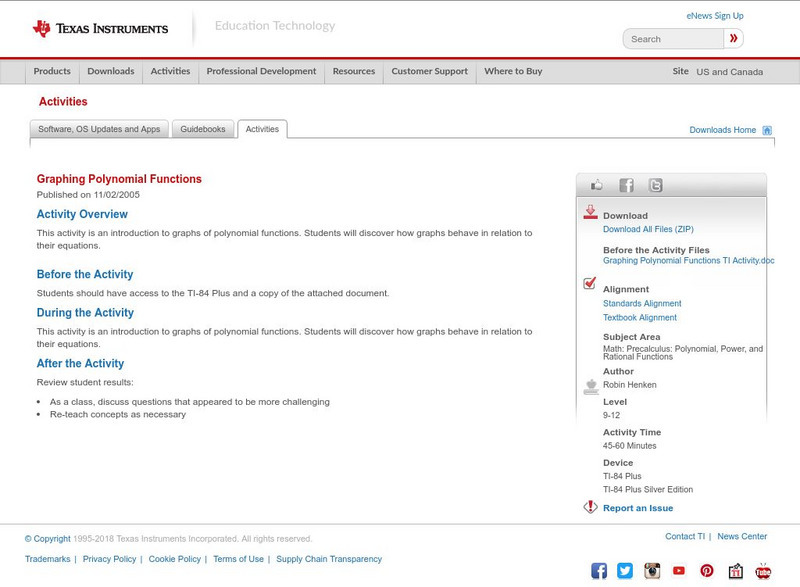 Here's a very detailed, step-by-step activity for students to do to learn about the relationship between the factored form of a polynomial function and its graph. Calculator instructions for the TI-83 are given, right down to the screen...