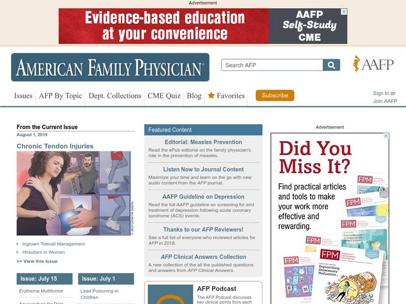This is an online medical journal with information on various medical topics. Includes current issues, content collections, the CME quiz, featured articles, and the blog. Provides links to previous editions.