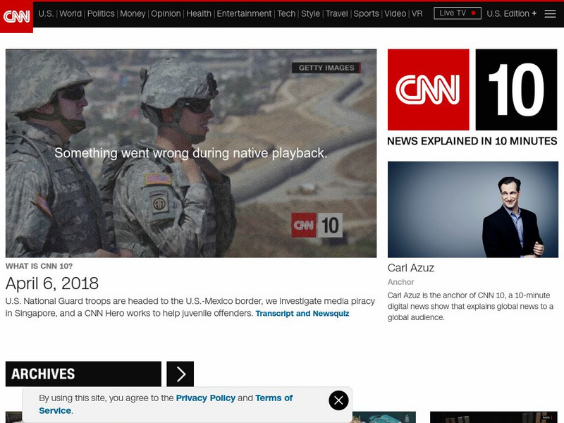 CNN 10 provide quick news segments from around the world organized into subject categories. Content includes world events, U.S. government, science & technology, economics & math, language & fine arts, and health.