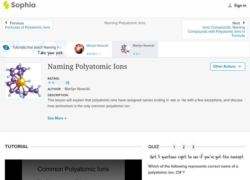 Sophia: Naming Polyatomic Ions: Lesson 2