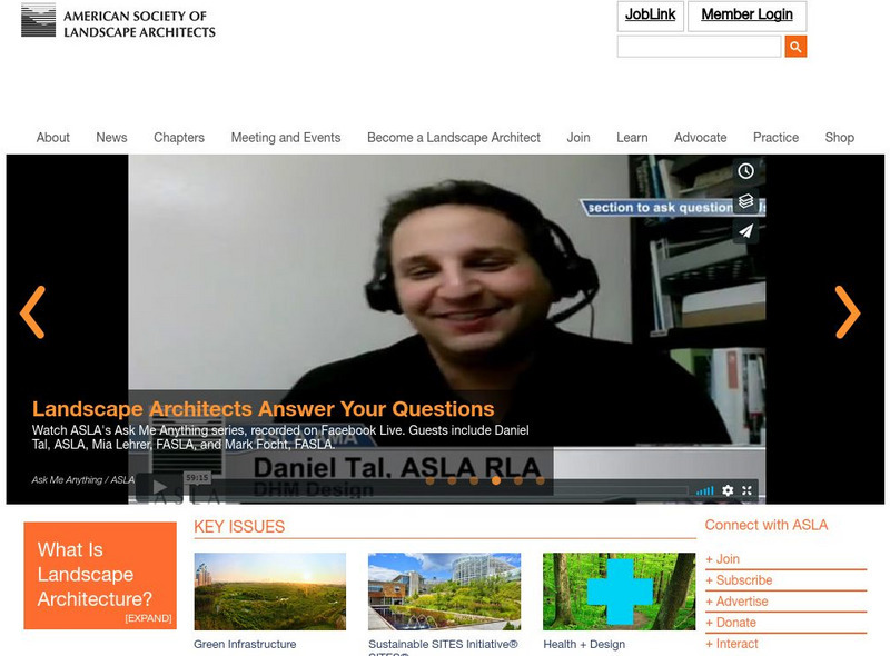Holds lots of information on landscape architecture. It has information about everything from upcoming landscape arcitecture events to information about the career.