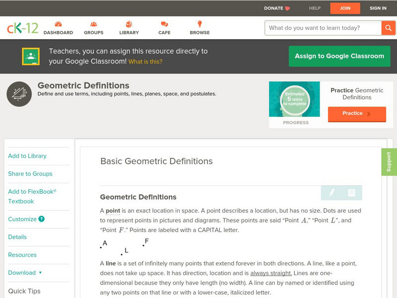 [Free Registration/Login may be required to access all resource tools.] This concept introduces students to the basic principles and definitions of geometry, including points, lines and planes. tudents examine guided notes, review guided...