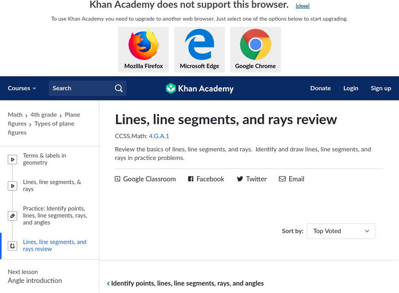 Khan Academy: Identify Points, Lines, Line Segments, Rays, and Angles