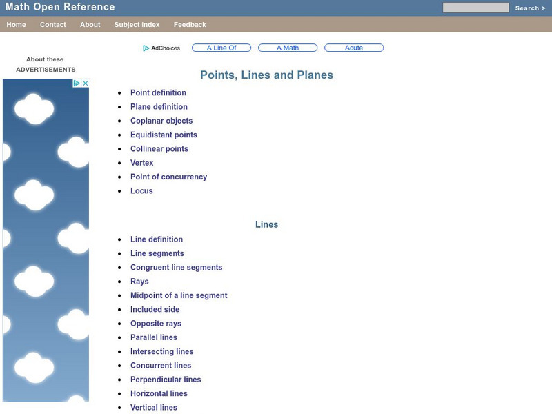 Shodor Interactivate: Lesson: Lines, Rays, Line Segments, & Planes