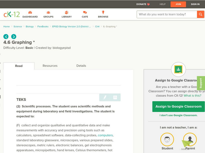 [Free Registration/Login may be required to access all resource tools.] Given a set of data, students will understand how to correctly draw a line or bar graph, interpret its patterns, and find the slope in the case of a line graph.