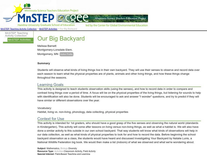 An activity for students to fine tune their observation skills using their senses in their own backyard. During this activity, students will record their observation to compare and contrast living things over a period of different seasons.