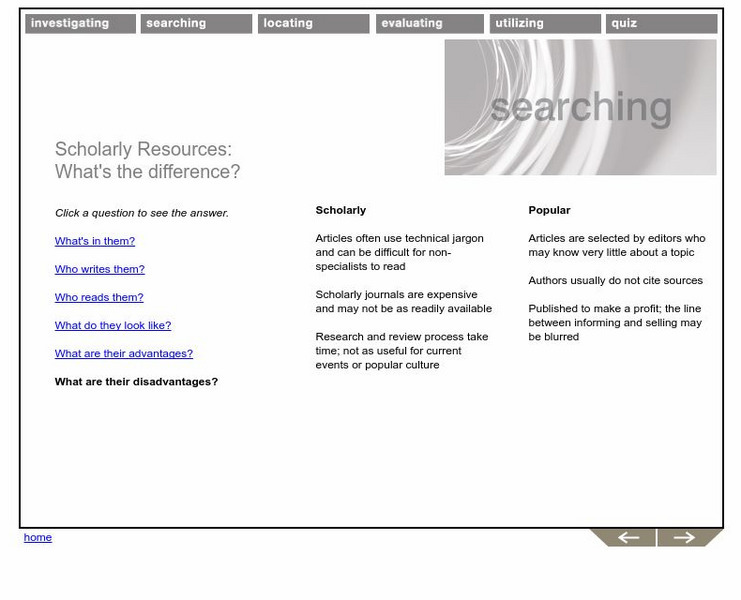This succinct explanation shows you what the difference is between a scholarly and a popular periodical or other resource.