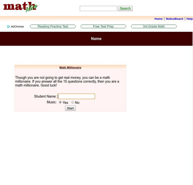 Answer only 15 questions to become a Math Millionaire when you play this interactive game that focuses on a variety of math skills. An engaging, fast paced, and fun way for learners to review math concepts. Answers are checked immediately.