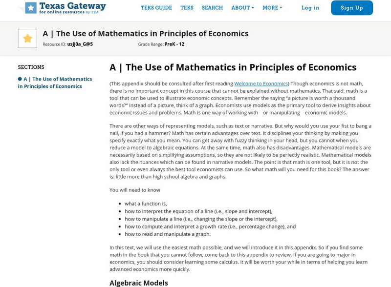 Texas Gateway: Appendices: The Use of Mathematics in Principles of Economics