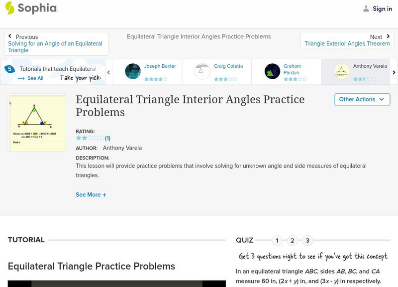 Sophia: Equilateral Triangle Interior Angles Practice Problems: Lesson 5