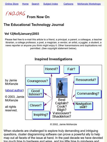An article at From Now On about how to help students do better research by changing the focus of research assignments and teaching students to ask essential questions. Some suggestions include using mind mapping, and using Inspiration to...