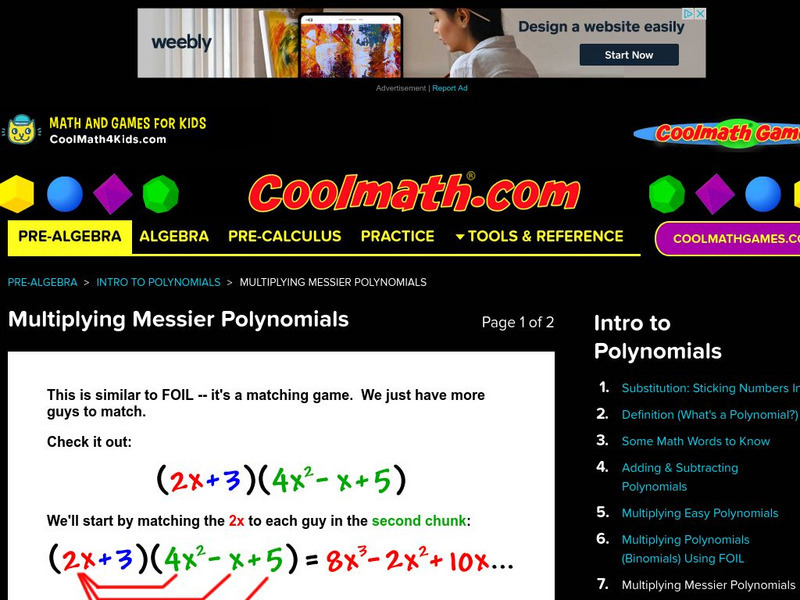 Coolmath: Multiplying Polynomials (Binomials) Using Foil