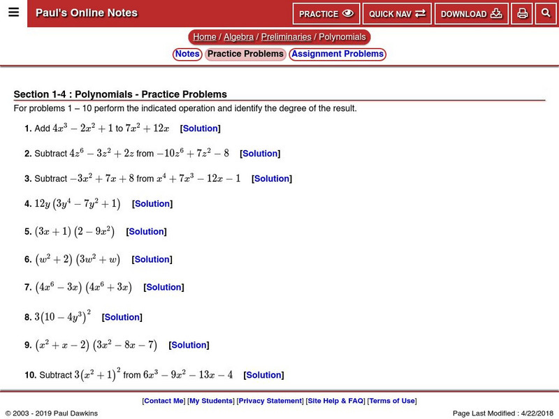 Paul's Online Notes: Algebra: Preliminaries: Polynomials