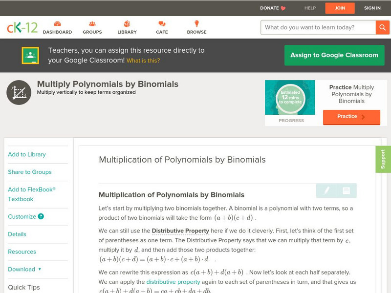 Ck 12: Algebra: Multiplication of Polynomials by Binomials