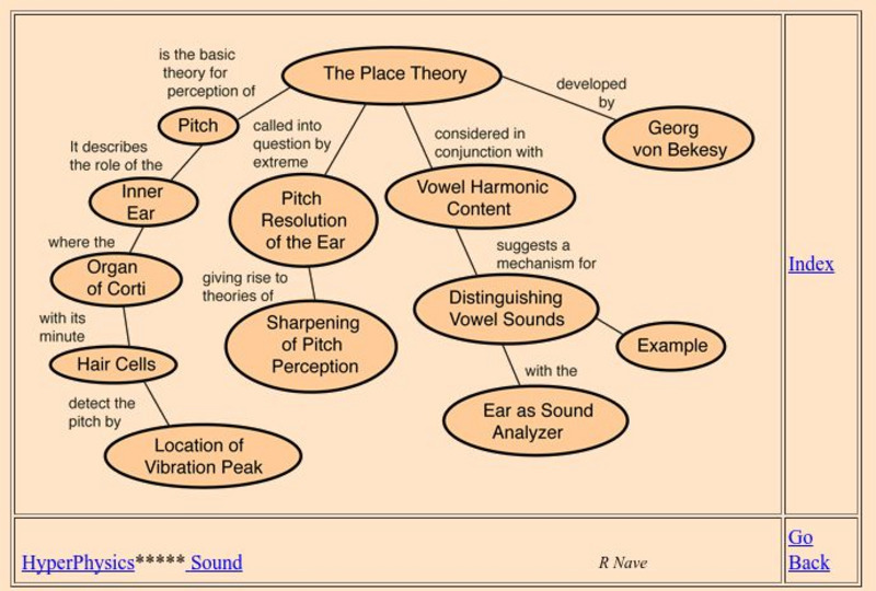 An indexing page for an elaborate and in-depth hyper-textbook on various physics topics. This page indexes several others which pertain to human ability to perceive sound and recognize pitch. Introduces and explains Place Theory.