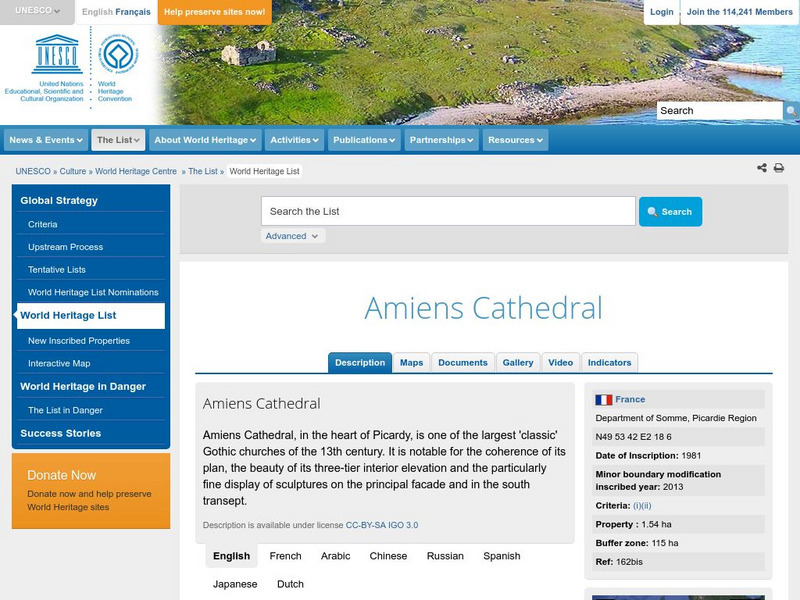 This site from the United Nations Educational, Scientific & Cultural Organization contains a brief description of the cathedral in Amiens, France. Related links are available in French.