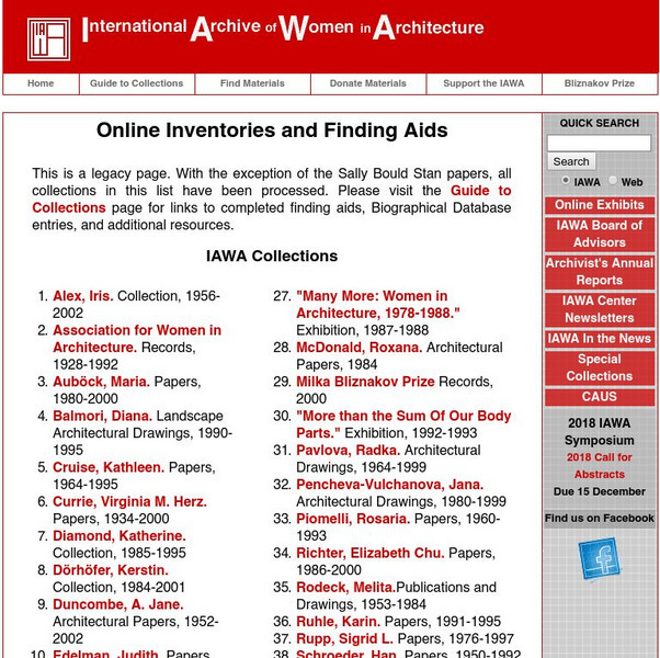 The IAWA was established in 1985 at Virginia Tech to document the history of women's involvement in architecture. Check out the Online Inventory and other links associated with this site.