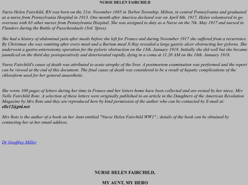 Www Virtual Library: Medical History of Wwi: Nurse Helen Fairchild