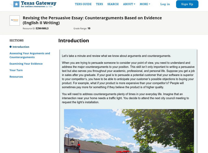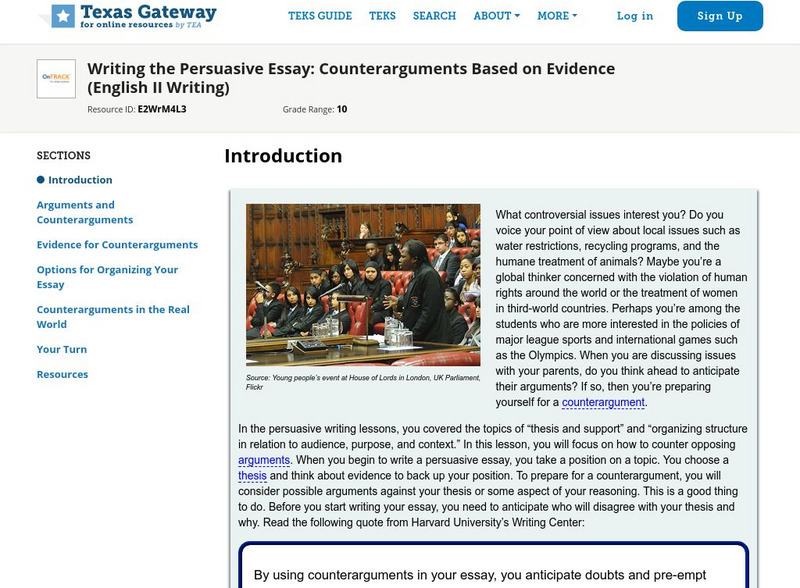 Texas Gateway: Writing the Persuasive Essay: Counterarguments Based on Evidence