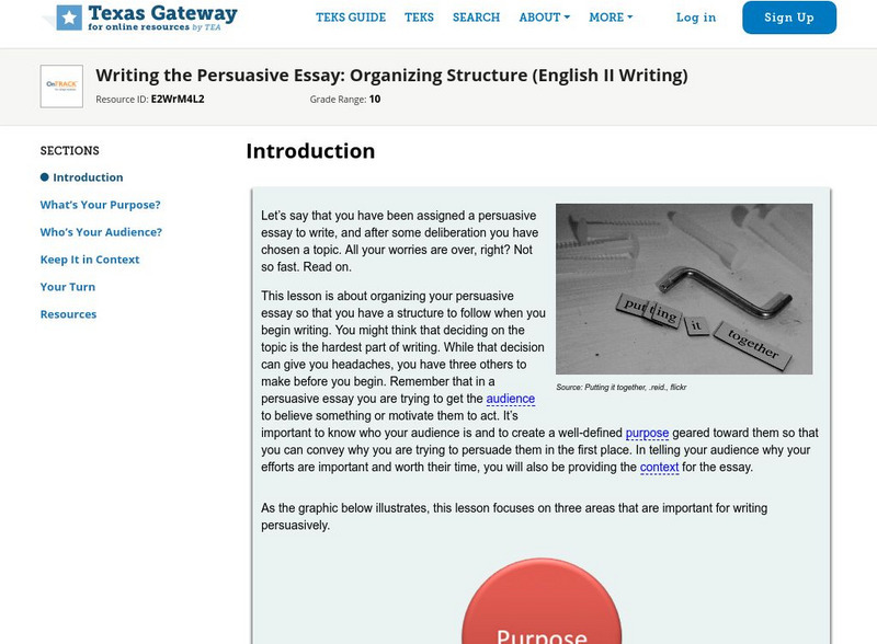 Texas Gateway: Revising a Persuasive Essay: Organization Appropriate to Purpose