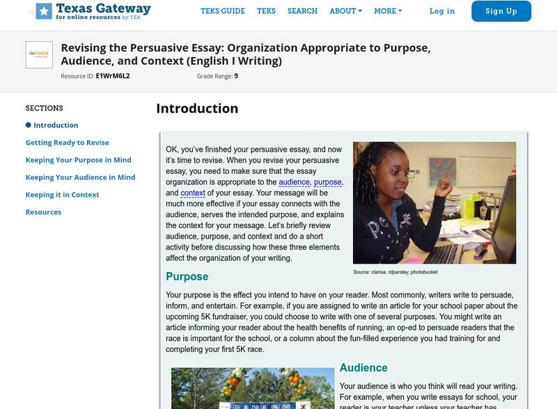 Texas Gateway: Revising the Persuasive Essay: Purpose, Audience, and Context