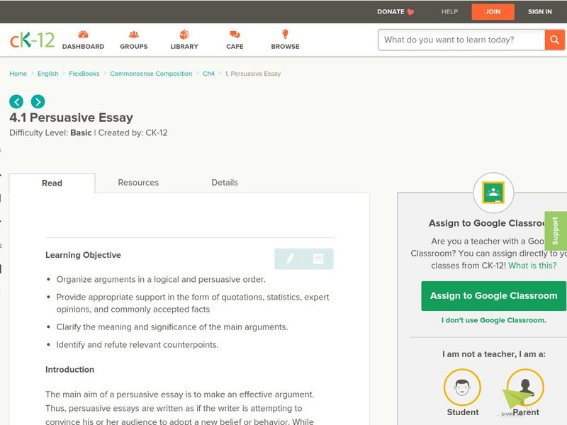 [Free Registration/Login may be required to access all resource tools.] Learn to write a persuasive essay by organizing arguments in a logical order, providing appropriate supporting details, clarifying main arguments, and identifying...