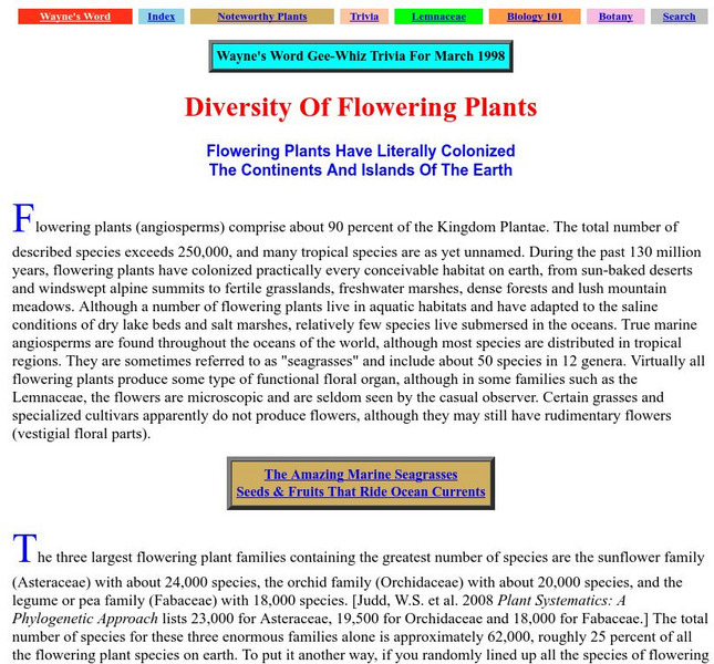 The pictures in this essay from Palomar College are wonderful. The huge variety of flowering plants including some of the more unusual groups, is discussed at an advanced level.
