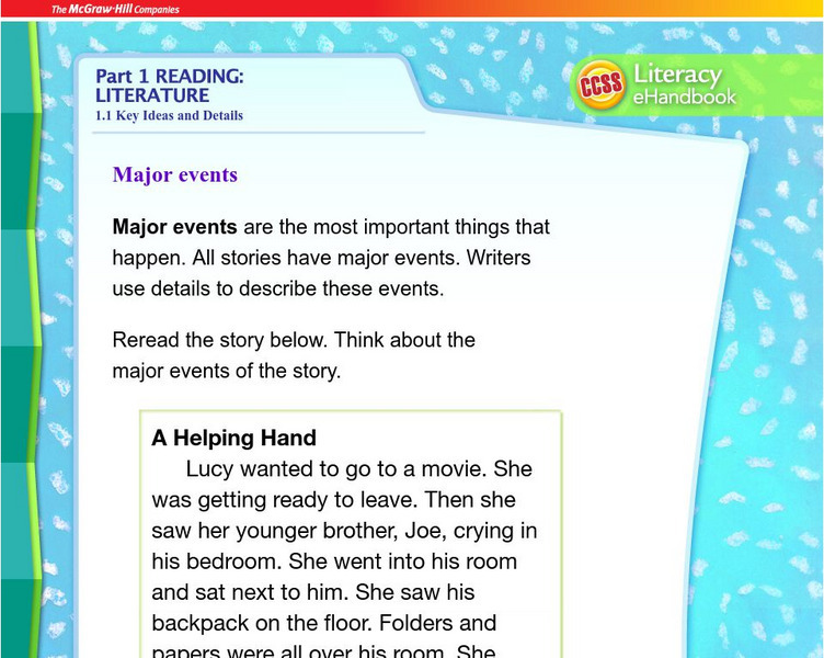 Better Lesson: rl.k.3 With Prompting and Support, Identify Characters, Settings,