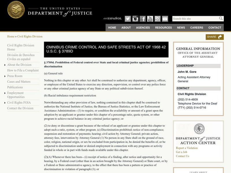 U.s. Department of Justice: Omnibus Crime Control and Safe Streets Act of 1968