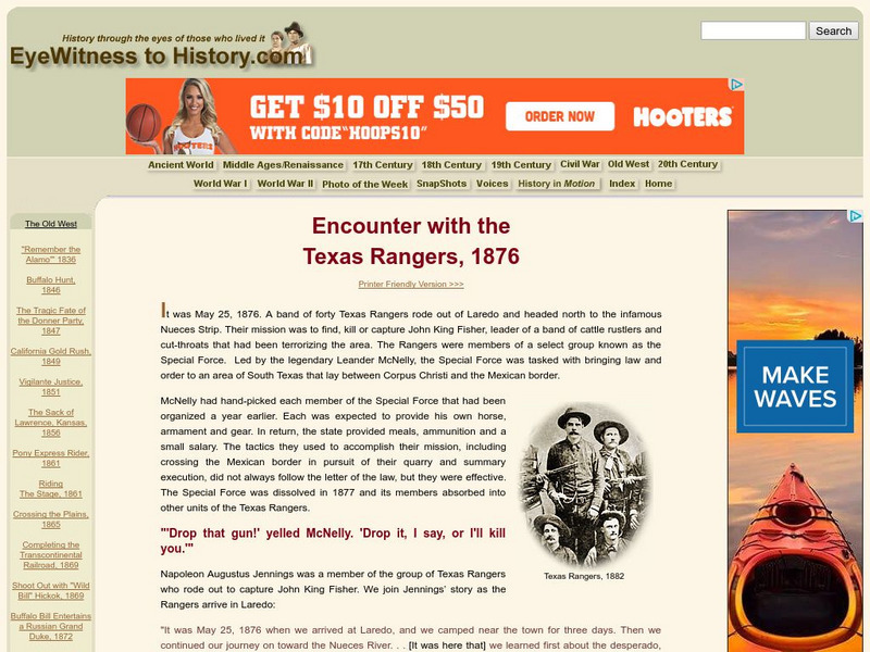 Eyewitness to History: Encounter With the Texas Rangers, 1876